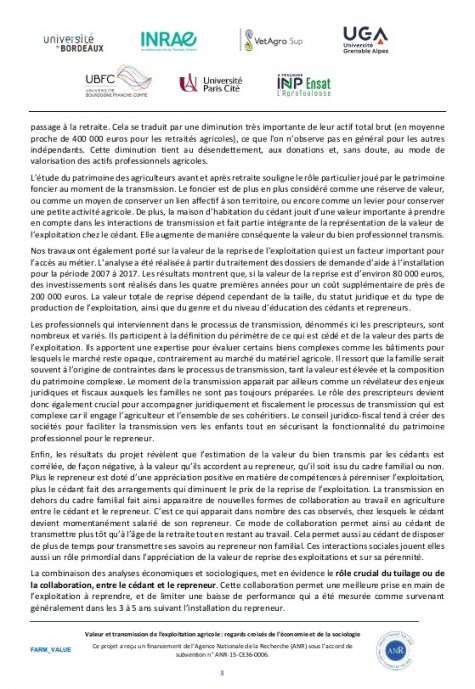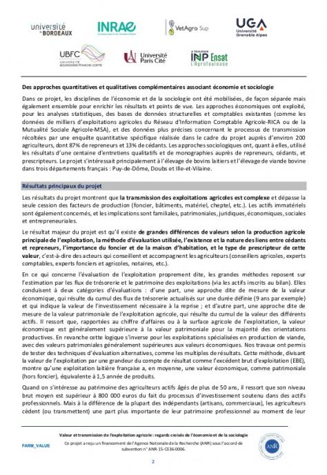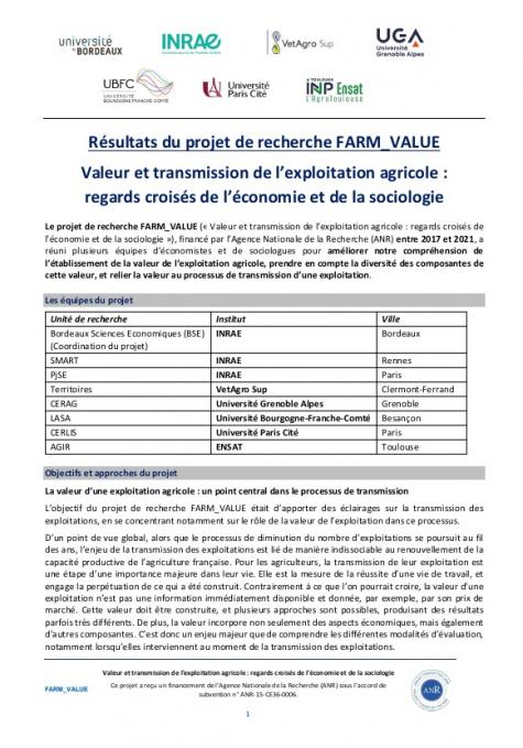 L’objectif du projet est de contribuer à la connaissance scientifique et d’apporter des éclairages nouveaux aux professionnels agricoles et aux décideurs publics sur la transmission des exploitations agricoles, en se concentrant notamment sur le rôle de la valeur de l’exploitation dans ce processus. Le but est de réaliser pour la première fois une évaluation approfondie de la façon dont la valeur d’une exploitation est établie, que ce soit du point de vue économique ou sociologique, et comment ces deux points de vue peuvent (ou doivent) être incorporés ensemble dans le cas des transmissions d’exploitations.