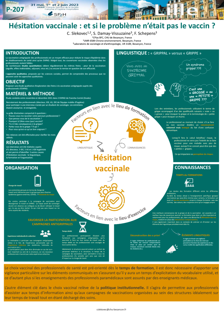 Le résultat le plus marquant est que les soignantes ne s’opposent pas à la vaccination, même si elles n’y trouvent pas un grand intérêt. Si elles refusent, ce n’est pas le vaccin en tant que tel mais c’est que se faire vacciner nécessite de laisser son poste de travail vacant. Cette vacance va désorganiser la journée et faire peser une surcharge de travail sur les collègues ou obliger à partir plus tard.